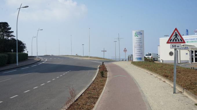 Séparation piste cyclable et zone piétonnière